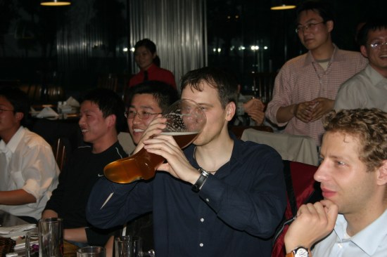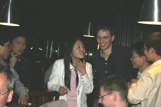 | Es gibt eine deutsche Wirtschaft in Suzhou. Gelegenheit für die Chinesen auch mal deutsches Bier zu trinken. Es hat ihnen sichtlich geschmeckt !! :-) | Die komplette Truppe. ........Für großes Bild: hier Rechtsklick, Ziel speichern unter...(1,4MB) |