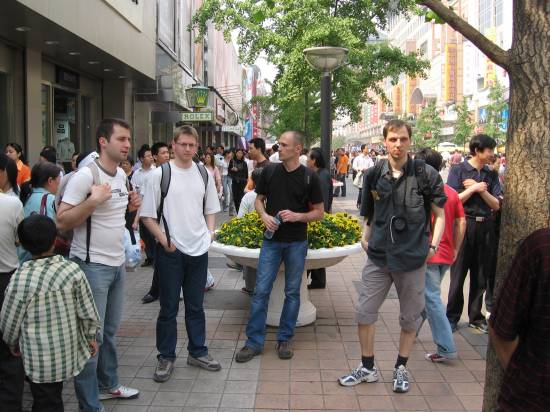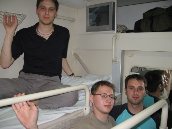 | Hatten sogar für ein paar EUR mehr diesmal ein 4-er Abteil erwischt. Mit Tür und mit Fernseher (allerdings nur chinesisches Programm und eh viel zu müde, als daß mich das interessiert hätte. Gute Nacht!! |