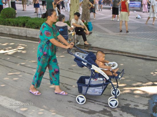 | Tai Chi-Übungen. Überall und zu jeder Tageszeit kann man es in den Städten von China sehen. Auf Plätzen treffen sie sich und ein mitgebrachter Kassettenrekorder bildet die musikalische Untermalung. | |